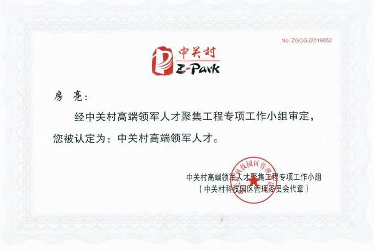 这一次房亮博士获得2019年度中关村高端领军人才的殊荣,不仅是对房亮博士创业领军能力的认可,也是对国科开云网页版页面登入-开云(中国)未来发展的认可。